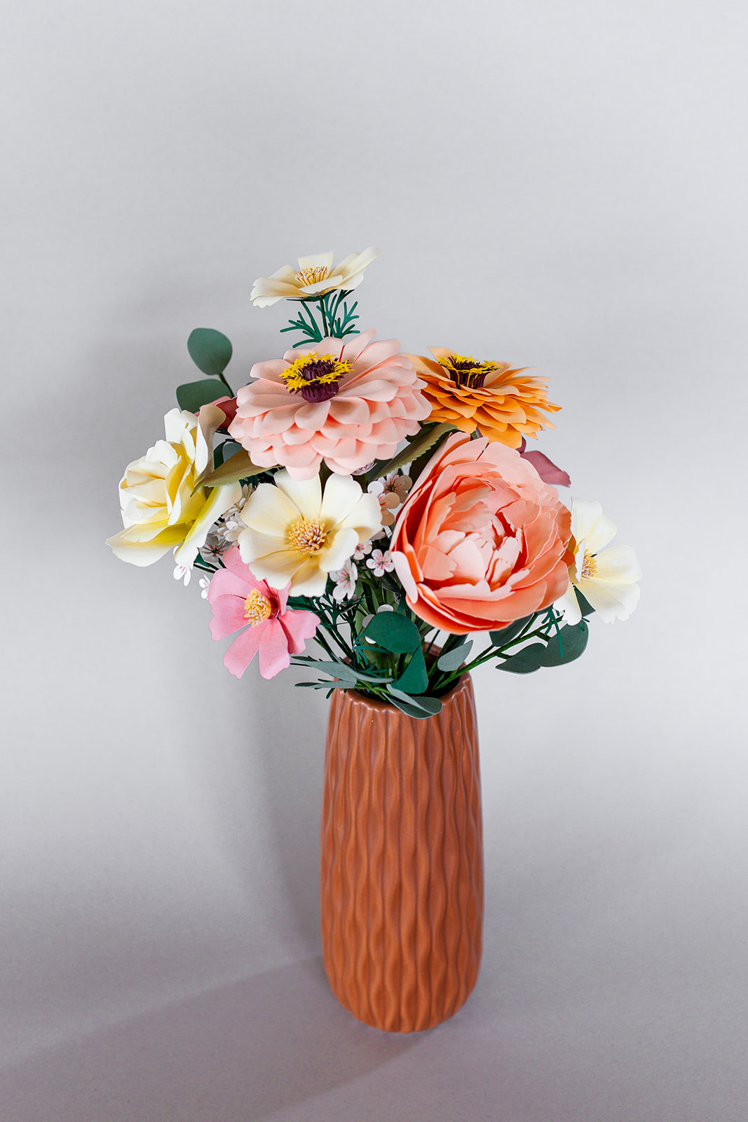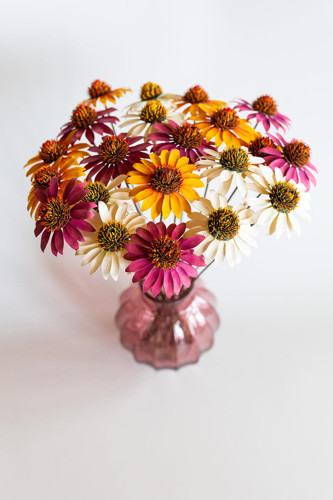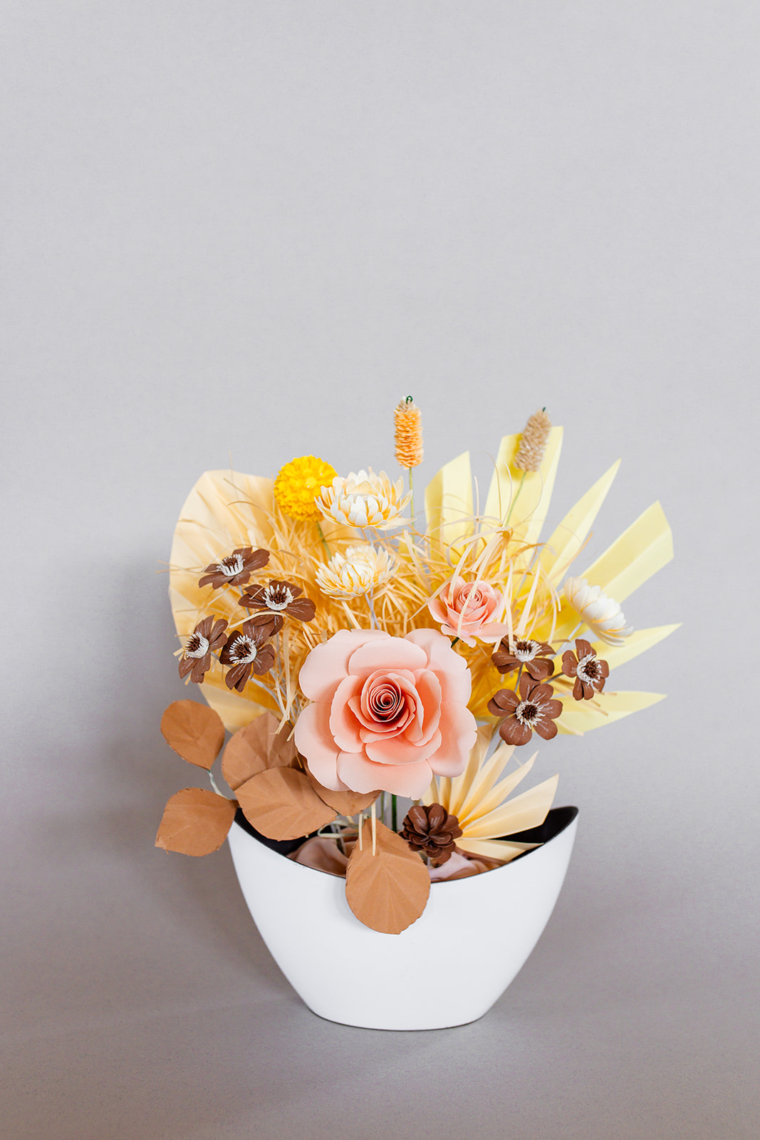 Používané druhy papíru hrají v tvorbě Fiorez zásadní roli. Jemný papír pro realistické okvětní lístky, strukturovaný papír pro výrazné tvary i luxusní metalické a perleťové varianty, které dodávají květům slavnostní charakter. Kombinace různých typů papíru umožňuje vytvářet bohatou škálu efektů – od přirozené lehkosti až po dramatickou výraznost. Každý materiál je pečlivě vybírán, aby podpořil originalitu i dlouhou životnost květin Fiorez.