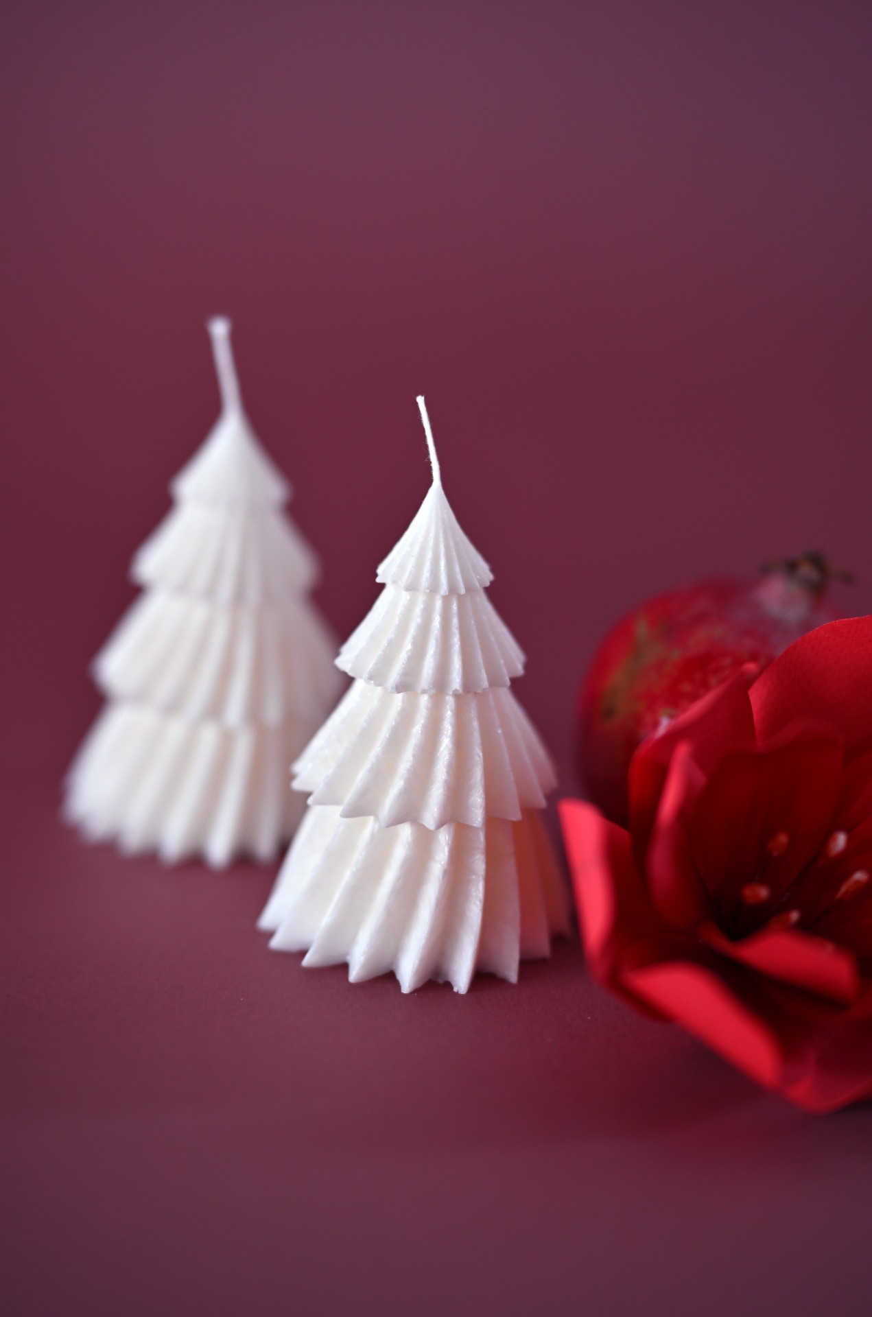 Ručně vyrobená vonná svíčka z palmového vosku ve tvaru stromečku v elegantním smetanovém odstínu. Palmový vosk vytváří na povrchu velmi zajímavý efekt "ledových květů".